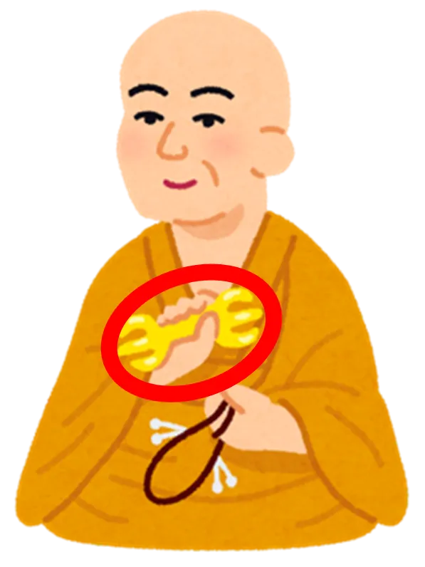 と手に持っていた三鈷(さんこ、下図の赤丸で囲んだ部分)を空中に投げ上げます。
