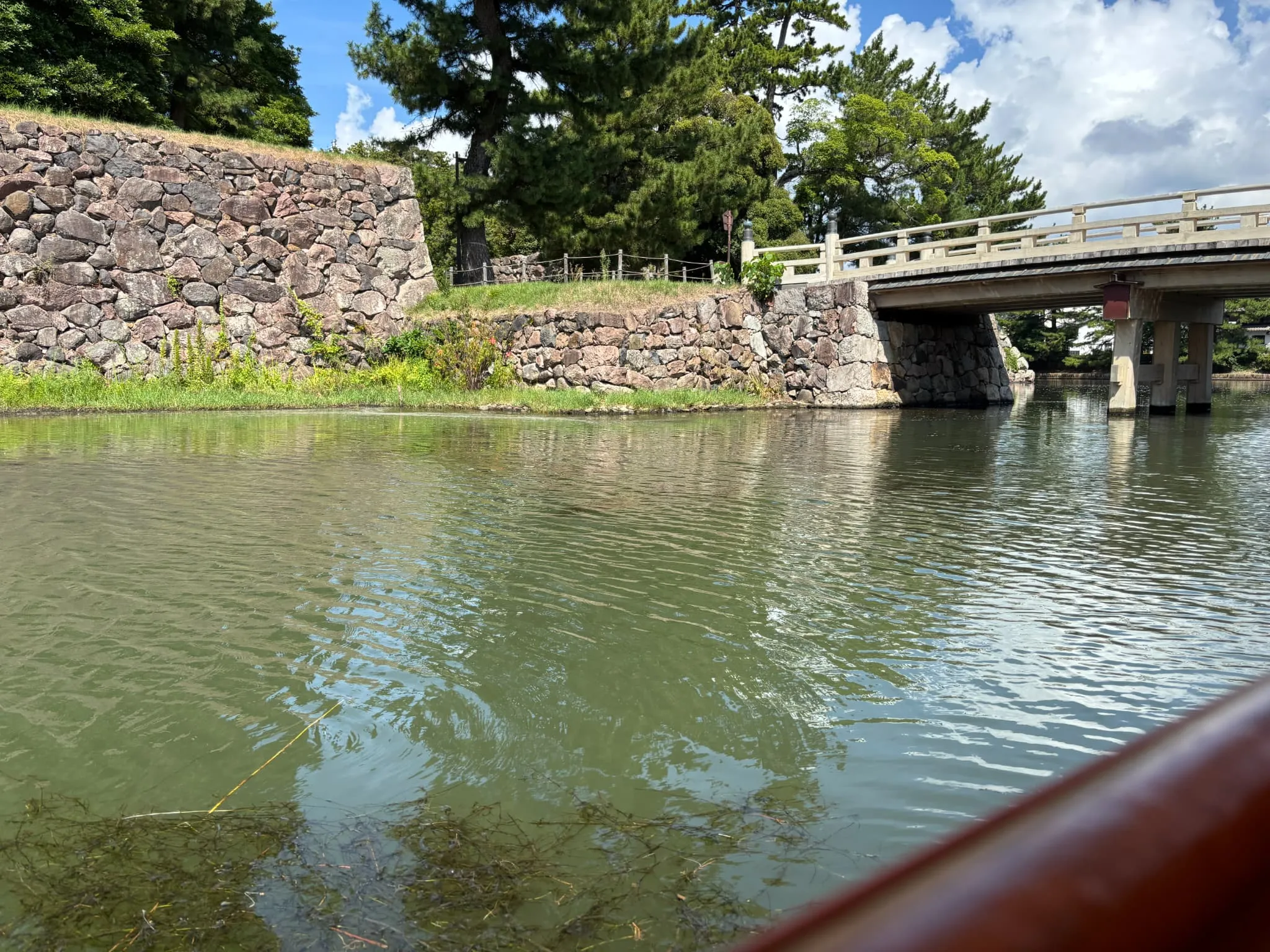 そんな堀川を、船頭さんの解説を聞きながら約50分かけて一周します。城内展示や景観も素晴らしいですが、水上からの視点は格別です。