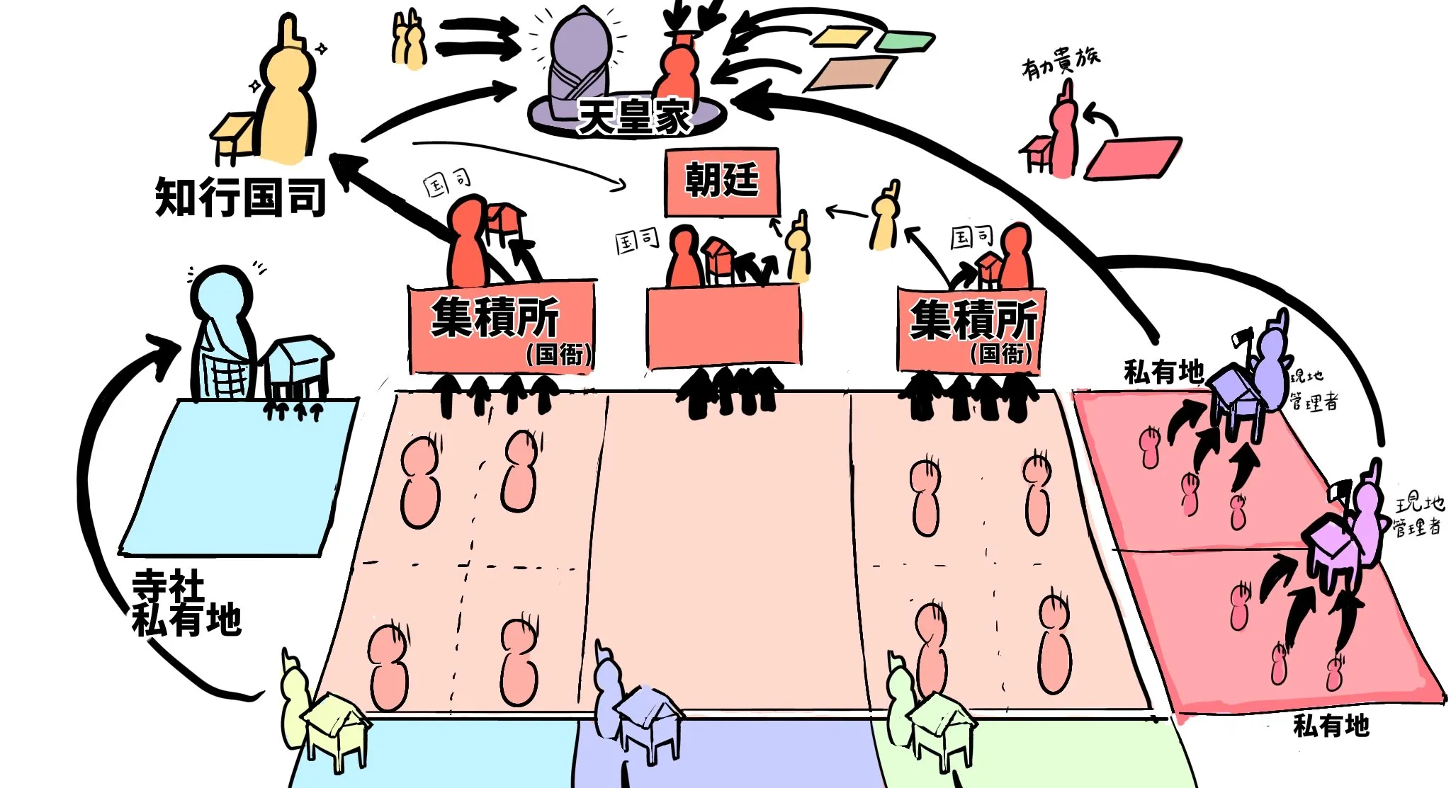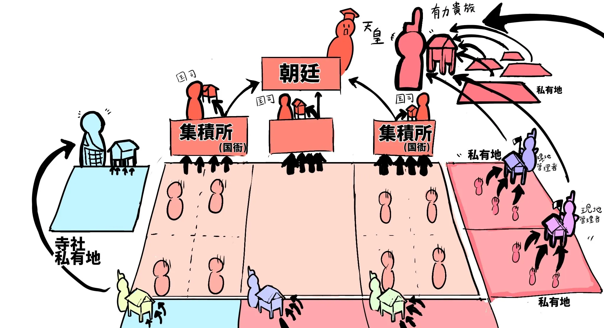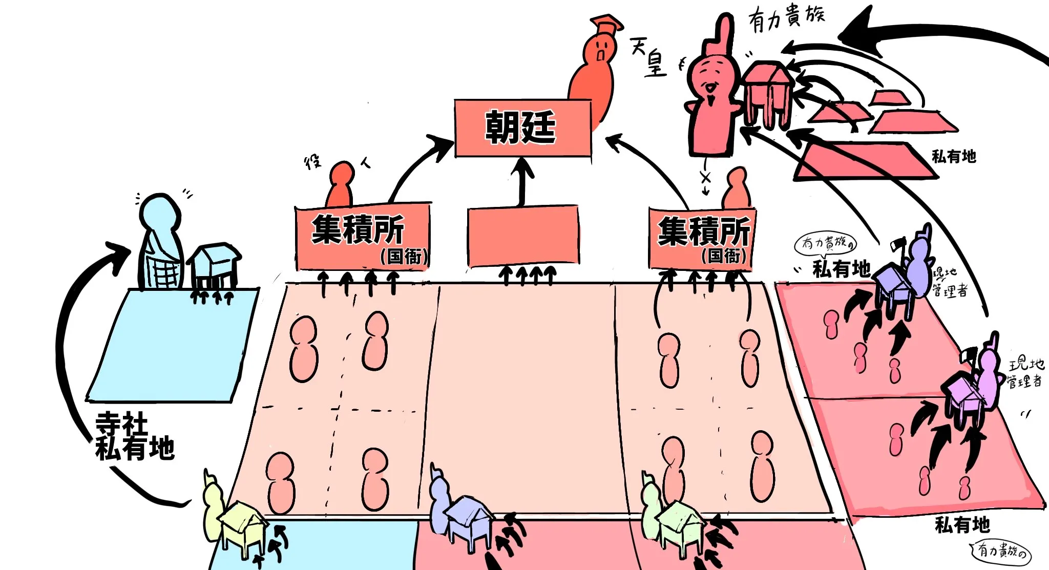 まとめると、税収は多くなったけど不足していた朝廷の土地は増えず、代わりに様々な私有地が誕生したという状況になったのです。