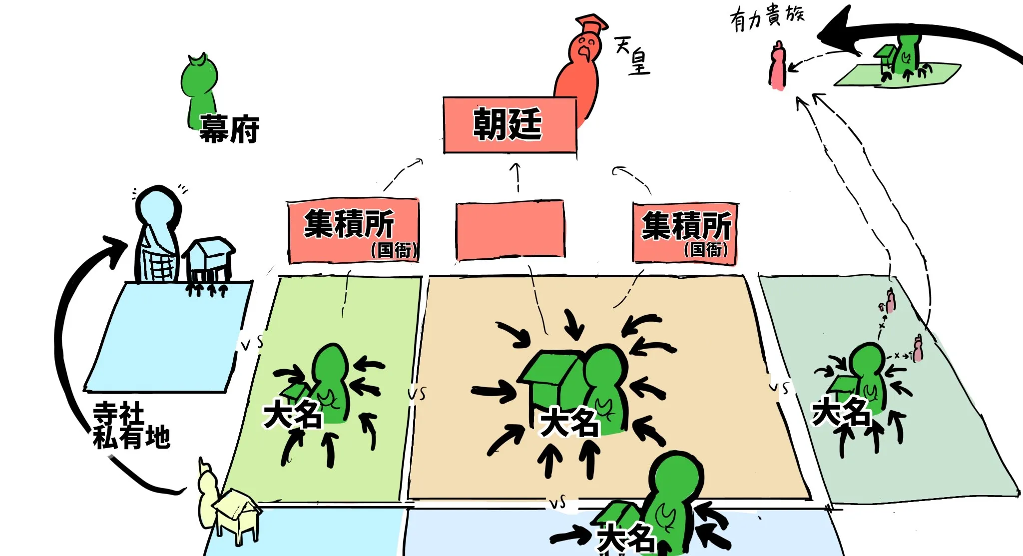 そして、大名は支配地域の安全保障をめぐって熾烈で、さらに規模の大きい争いを繰り返すようになりました。すると、強い軍隊が必要な彼らは、朝廷や私有地所有者に納めるはずだった年貢を納めることなく、自身の支配地域の統治と軍隊の強化に使うようになりました。